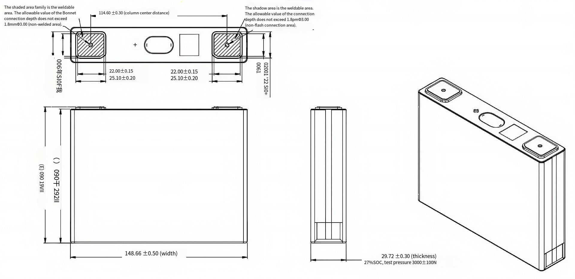 Typical Dimension(W*T*H) | 148.66*29.72*114.61mm | @3000 ± 200 N, 17%SOC |